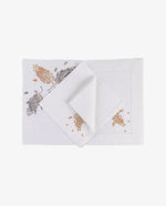 Set of 1 Placemat & Napkin W/ Intricate Tiny Leaf Embroidery On White Linen