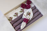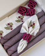 (Set of 4) This set includes Sole Purple Placemat, Fig Napkin and Purple Rio Napkin Ring.