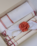 (Set of 4) This set includes Rose Sardenha Placemat, Linea Rose Napkin and Rose Flower Napkin Ring.