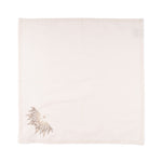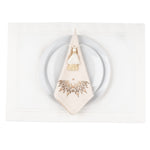 (Set of 4) Set includes White rectangular placemat with white border stitching, beige color napkin with Royal bird embroidery and two-toned ‘beige and white’ napkin ring.