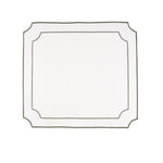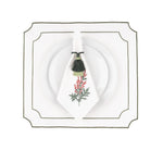 (Set of 4) Set includes Classic off-white placemat with green border stitching, white napkin with branch embroidery and two-toned green napkin ring.